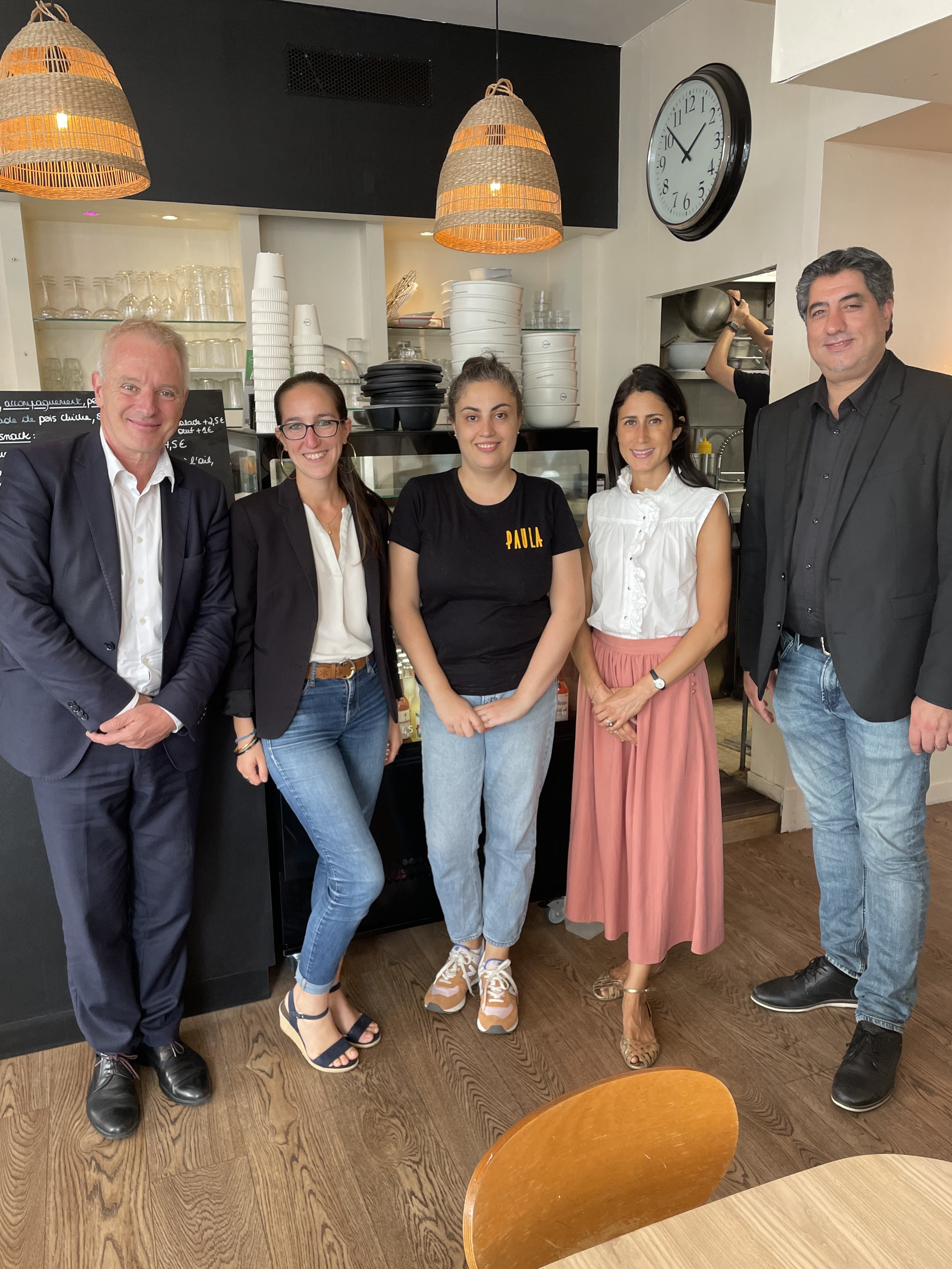 La première étape de cette journée sur le terrain était un déjeuner dans le restaurant Paula - qui travaille au demeurant avec Vytal, adhérent de Réseau Vrac et Réemploi qui propose des contenants réutilisables pour la restauration à emporter - en compagnie d’Iman Manzari, adjoint au maire délégué au commerce et de Claire Véret, directrice générale adjointe de la Ville de Tours, notamment pour travailler à la valorisation du vrac et du réemploi auprès des commerçant·es de Tours.