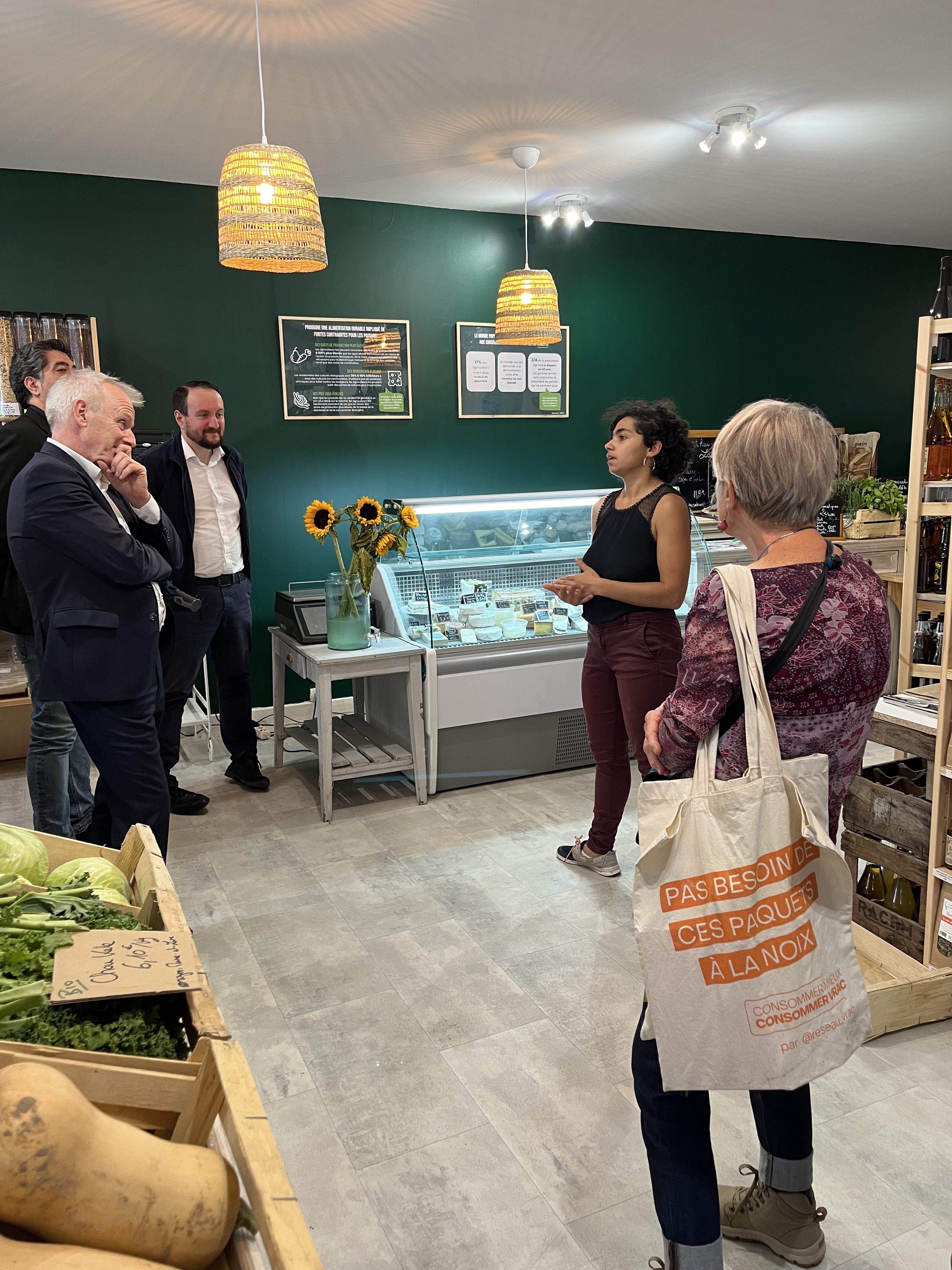 L’après-midi fut consacrée à la visite sur le terrain des commerçant·es vrac de la ville : Marc du day by day, Amanda de La Fourchette Paysanne, Claire d’Au Tour du Vrac. Les adhérent·es de Réseau Vrac et Réemploi ont ainsi pu exprimer leurs attentes et leur besoin de se sentir soutenu·es par les élu·es de la ville.