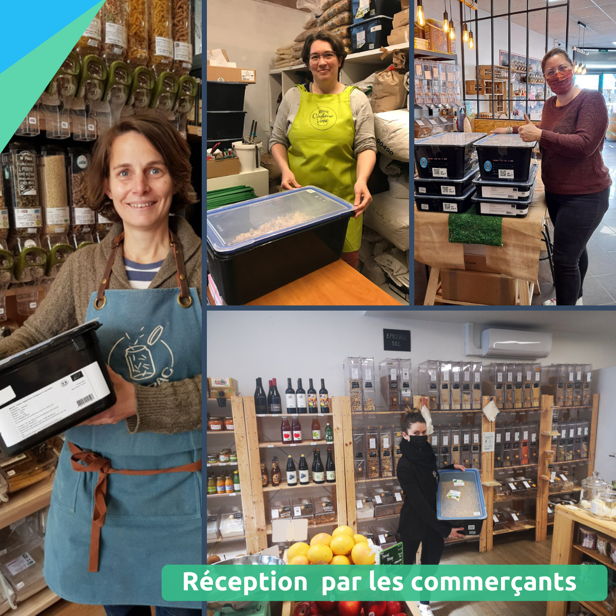 Le test du Hub Vrac a permis de répondre aux enjeux de protection produit, de praticité de manipulation et de stockage qui pouvaient jusqu’ici être un frein pour les fournisseurs et les commerçants. Nathalie, fondatrice de Couleur Vrac a Créteil, investie dans le projet depuis ses débuts résume ainsi :