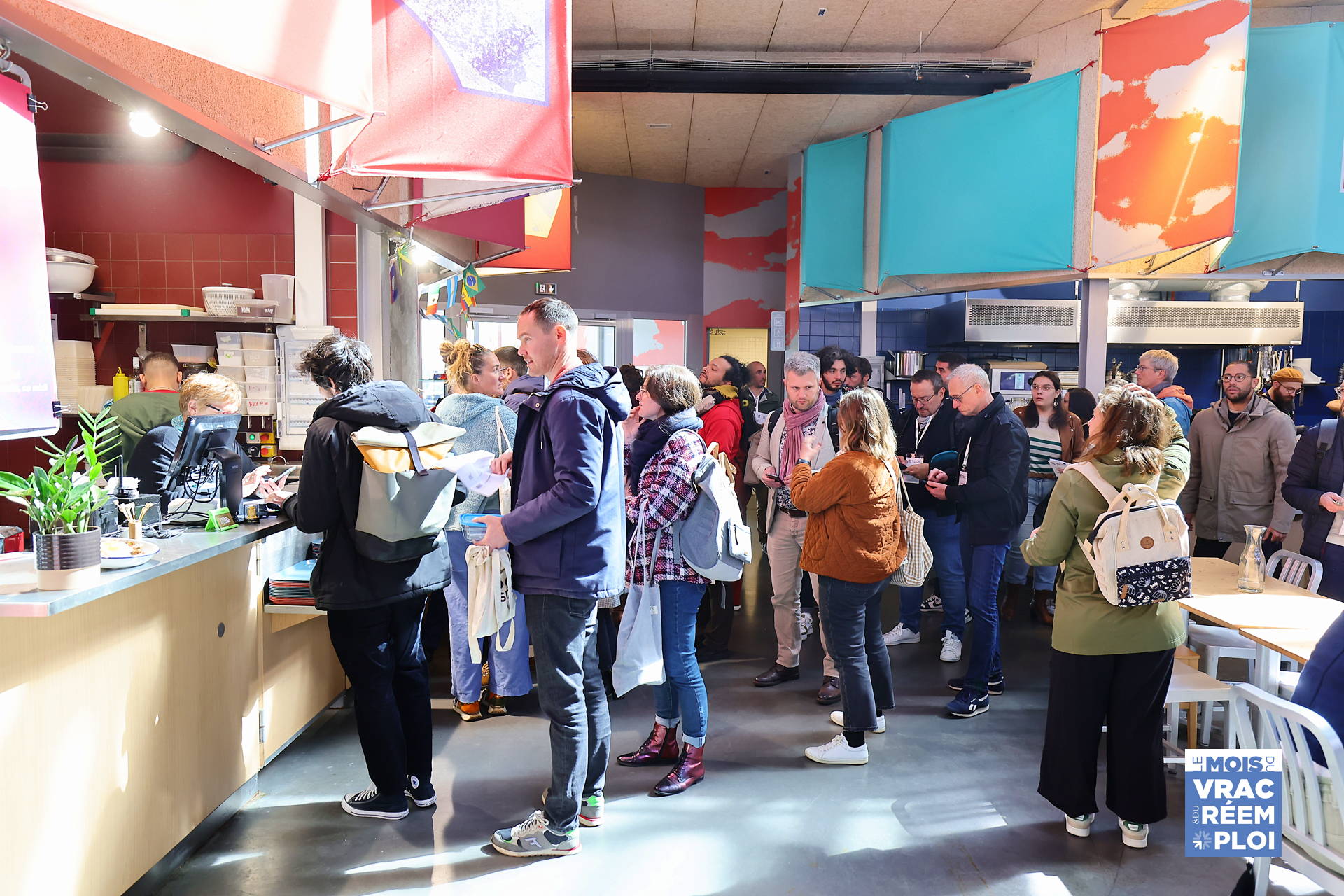 À l’heure du déjeuner, le Magmaa food hall a accueilli les participants dans une ambiance conviviale. Le lieu a offert un cadre agréable et calme pour ce moment d’échange. Le repas était offert à ceux venus avec leur propre contenant. Une opération originale mise en place pour la clôture du Mois du Vrac et du Réemploi, également ouverte au grand public. Ceux qui n’avaient pas de lunchbox ont pu profiter du stand Les Boîtes Nomades, adhérent local, qui proposait un service de consigne/déconsigne.