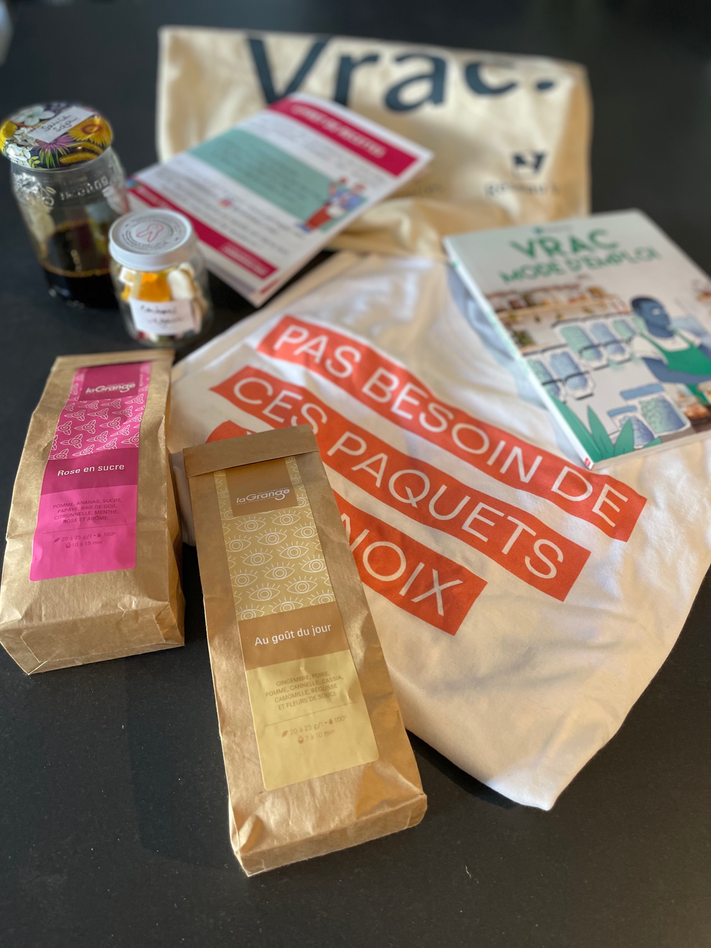 En fin de journée nous regardions les estimations données et nous contactions la personne la plus proche du Juste Poids pour lui offrir l’ensemble du tote-bag. Un moyen d’accompagner les gagnants dans la démarche de consommation vrac, en l’équipant et en lui faisant découvrir des recettes vrac et produits parfois méconnus.