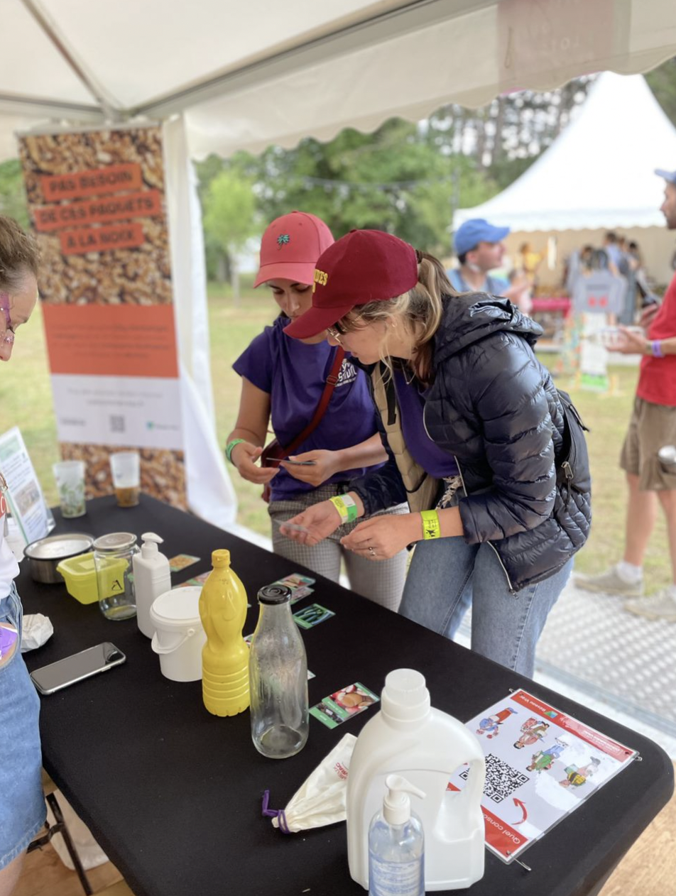 Tout d’abord, les festivaliers étaient ravis de pouvoir se challenger entre amis ou entre membres d’une famille sur la première animation que nous proposions : associer en 1 minute, un maximum de produits vrac avec le contenant réemployable ou réutilisable adapté.