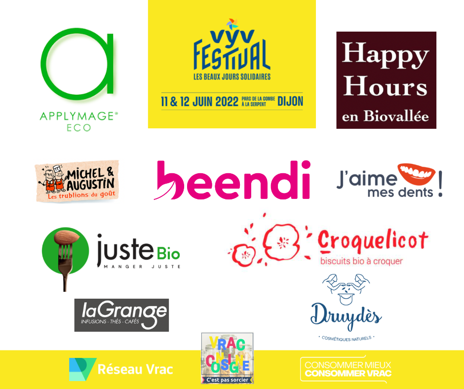 Les 11 et 12 juin 2022, Réseau Vrac était présent à la 3ième édition du festival de Musique VyV Les Solidarités , qui s’est tenu à Dijon L’occasion, dans le cadre des partenariats avec la Région Bourgogne-Franche-Comté (BFC) et l’ADEME BFC, de répondre à l’enjeu d’accroître le nombre de consommateurs vrac sur ce territoire, en touchant tous les publics.