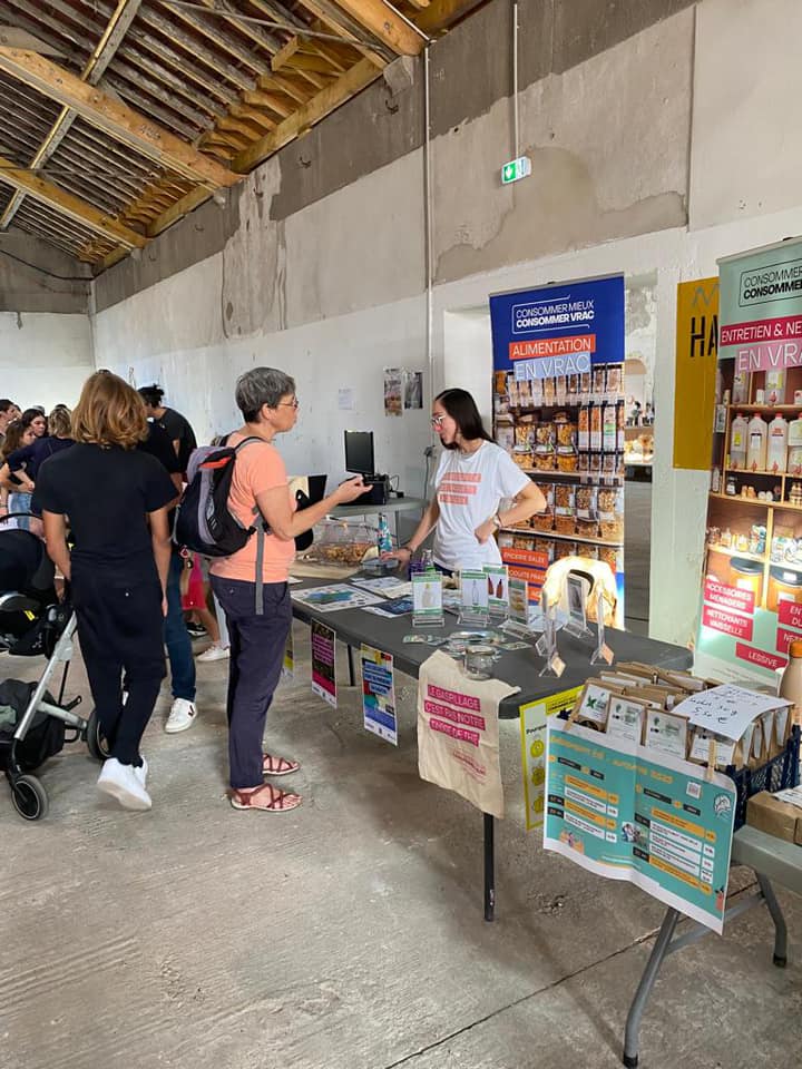 Le 1er octobre dernier, Au Tours des Possibles a organisé sa troisième édition du Village des Possibles aux Beaumonts à Tours sous la forme d’une enquête policière-escape game. Ainsi, pour démasquer le coupable, les personnes qui participaient au jeu devaient enquêter auprès de tous les artisan·nes et producteur·rices locaux·ales, associations, entreprises, et institutions engagées sur les enjeux climatiques du territoire qui étaient présent·es au Village des Possibles. Parmi les énigmes à résoudre, les joueur·euses devaient, entre autres, questionner la chargée de mission vrac et réemploi de la région Centre-Val de Loire qui tenait un stand de sensibilisation au vrac et au réemploi dans le village. Associer une action de communication sur la filière à un escape-game était une superbe idée pour intéresser les participant·es au sujet du vrac et du réemploi. En effet, en venant chercher sur le stand des indices pour leur enquête, les joueur·euses ont identifié les points de vente vrac et réemploi à proximité de chez elleux et se sont renseigné·es sur le développement de la filière en local. Merci à l’équipe bénévole d’Au Tours des Possibles d’avoir organisé cet événement qui a été un franc succès ! Pas moins de 1 500 personnes sont venues enquêter ! Nous remercions particulièrement Claire Dupont, gérante du commerce vrac Autour du Vrac, adhérente de Réseau Vrac et Réemploi et membre active d’Au Tours des Possibles, qui nous a introduite auprès de l’association.