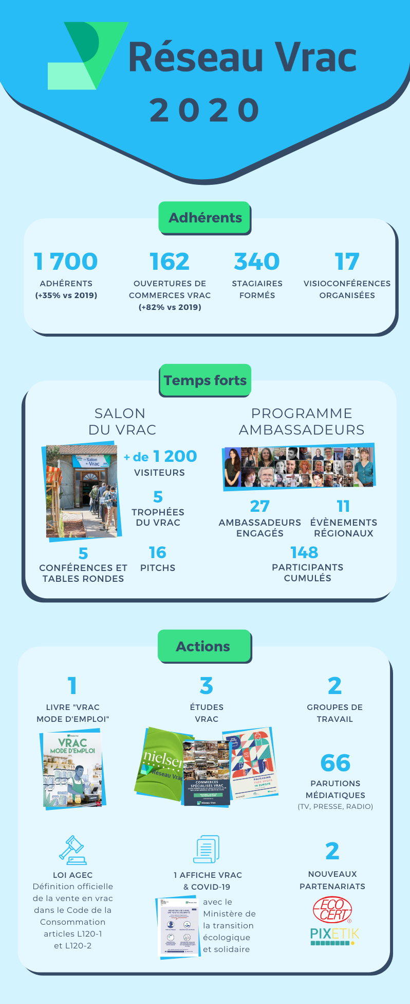 A l’occasion des fêtes de fin d’année, Réseau Vrac a souhaité vous porter une petite attention en partageant cette infographie exclusive sur les chiffres clés de l’année 2020 et les temps forts de Réseau Vrac afin que vous soyez incollable avec vos proches sur les actions de l’association !