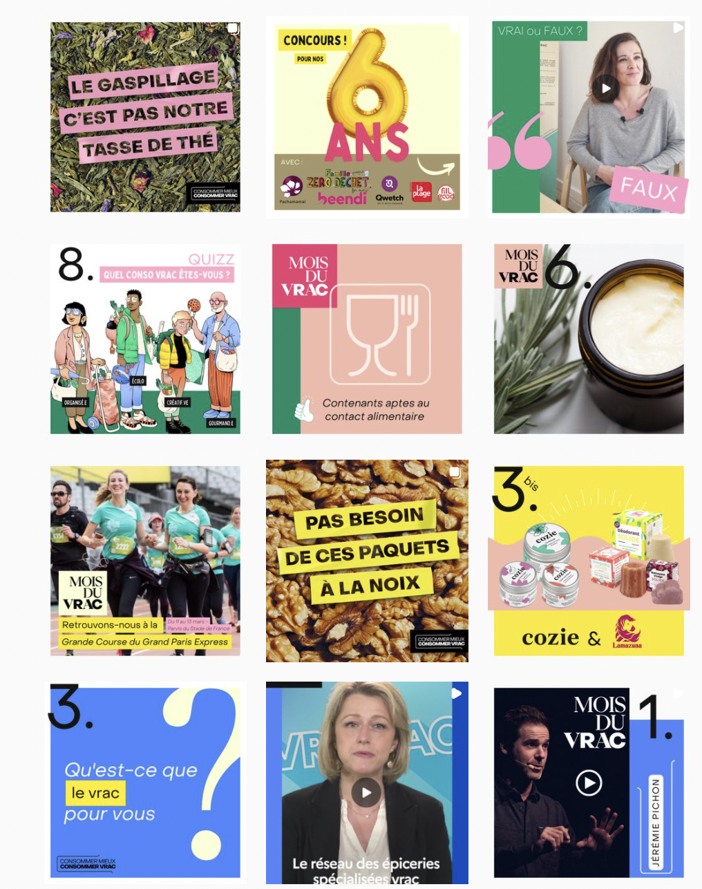 Inauguré 15 jours plus tôt, le compte Instagram de Réseau Vrac a accueilli pendant les 31 jours que compte le mois de mars des contenus informatifs, participatifs et ludiques sur le vrac à travers des quizz, des zooms produits ou encore 3 concours inédits en partenariat avec des adhérents de l’association. Ce compte restera bien sûr animé au fil de l’année, et s’adresse véritablement à tous, débutants, curieux sans avoir encore osé franchir le pas ou expert des bocaux.